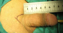 阴茎韧带松解延长术是在现代微创技术条件下,通过虚拟内窥镜技术,在耻骨上做1~2个2cm左右的小切口,引入内窥镜,松解牵制阴茎的部分韧带,切断阴茎浅、深悬韧带至耻骨弓处,使埋藏于耻骨联合前方的海绵体成为游离部分并突出于体外。